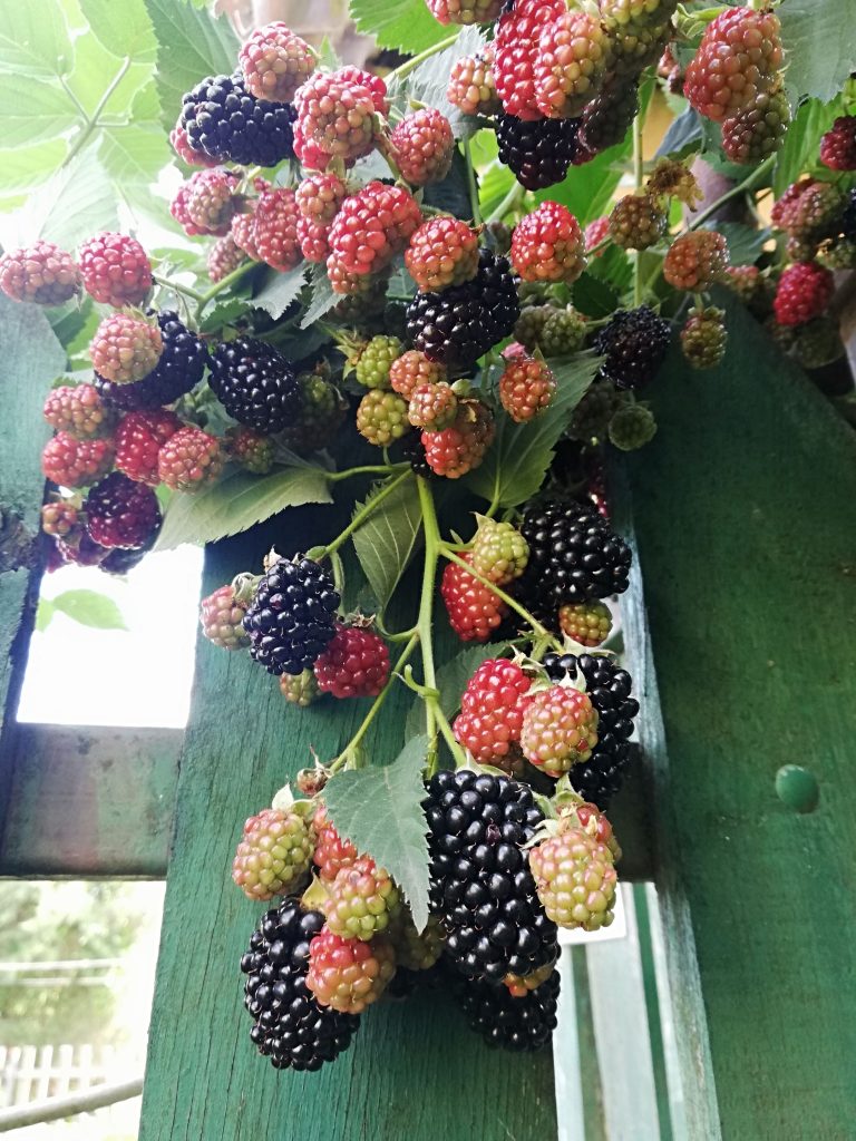 Ezt a black metal kinézetű bogyót fotózni igen nehéz, annyira csillog. Kesztyű híján simán befogja az ember kezét szedés közben, olyan magas a festékanyag tartalma. Sok mindenben hasonlít a málnára, az alapvető különbség, hogy szerintem sokkal kényesebb. Ennek ellenére mindenkit bíztatok az ültetésre, mert igazán mutatós darab mind a növény, mind a gyümölcs. Nekem tüskementes, félig kúszó fajtám van. Elengedhetetlen tartozéka a támrendszer, és a szakszerű metszés, amiről fogalmam sincs. Eskü, utánanéztem, de annyira bonyolultnak tűnik, hogy inkább csak ránézésre estem neki a metszőollóval, ritkítottam, rövidítettem, mert iszonyatosan burjánzik mindenfelé, átfutott a szomszédba is már. 1 óriási bokrom van, amiből az évek alatt lett még kettő közvetlenül mellette, valamint 3 szedergyerek maradt meg lemetszett ágak dugványozásából.